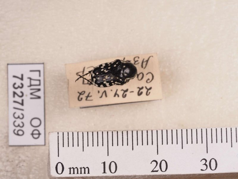 Сухой препарат. Жук бронзовка. Oxythyrea. Классификация: Членистоногие Arthropoda, Насекомые Insecta, Жуки Coleoptera, Пластинчатоусые Scarabaeidae