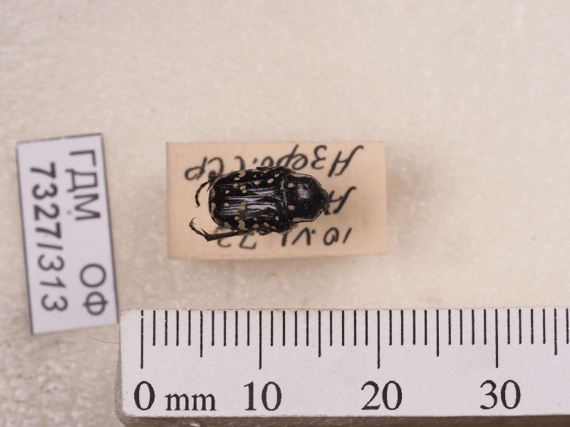 Сухой препарат. Жук бронзовка. Oxythyrea. Классификация: Членистоногие Arthropoda, Насекомые Insecta, Жуки Coleoptera, Пластинчатоусые Scarabaeidae
