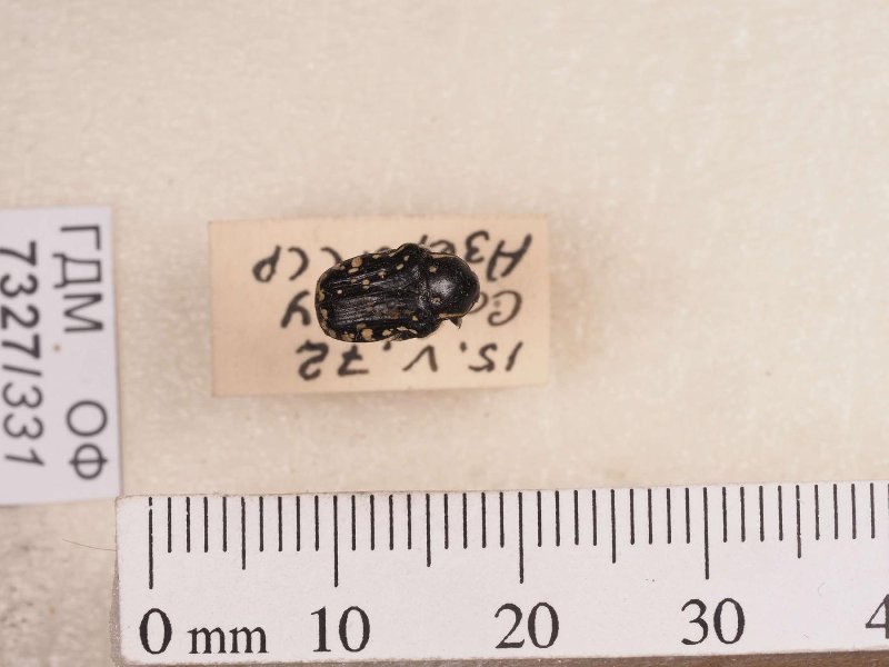 Сухой препарат. Жук бронзовка. Oxythyrea. Классификация: Членистоногие Arthropoda, Насекомые Insecta, Жуки Coleoptera, Пластинчатоусые Scarabaeidae