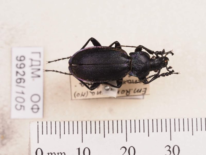 Сухое насекомое. Жук жужелица. Carabus violaceus Linnaeus, 1758. Классификация: Членистоногие Arthropoda, Насекомые Insecta, Жуки Coleoptera, Жужелицы Carabidae, Carabus, Жук C. coriaceus Linne, 1758