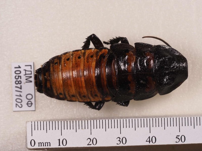 Сухое насекомое. Таракан шипящий мадагаскарский. Gromphadorhina portentosa. Классификация: Членистоногие Arthropoda, Насекомые Insecta, Тараканы Blattodea, Тараканы блабериды Blaberidae