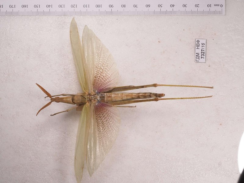Сухое насекомое. Акрида пустынная. Acrida oxycephala (Pallas, 1771). Классификация: Членистоногие Arthropoda, Насекомые Insecta, Прямокрылые Orthoptera, Саранчовые Acrididae