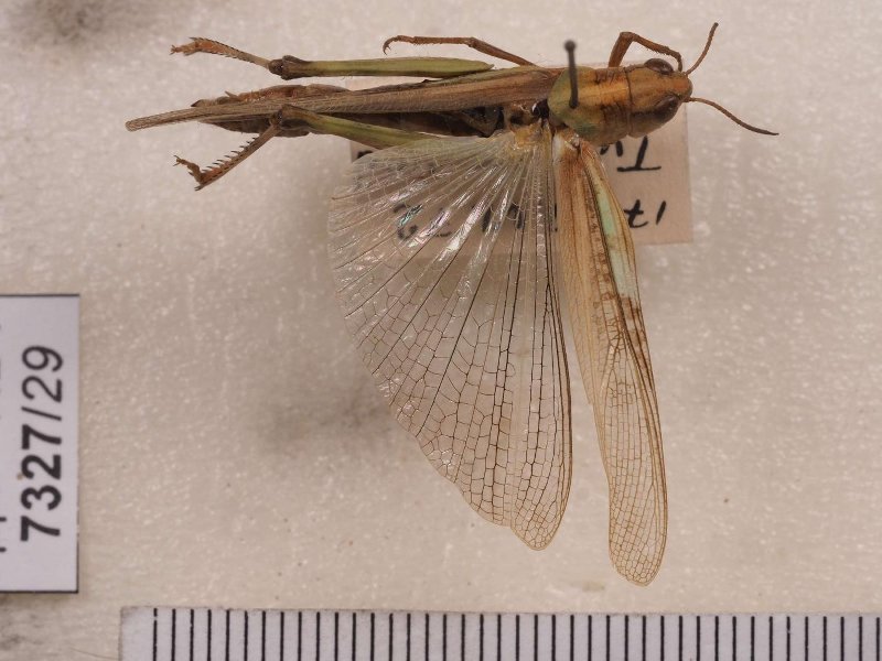 Сухое насекомое. Кобылка. Aiolopus thalassinus (Fabricius, 1781). Классификация: Членистоногие Arthropoda, Насекомые Insecta, Прямокрылые Orthoptera, Саранчовые Acrididae