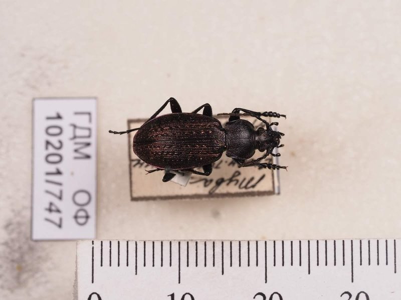 Сухое насекомое. Жук жужелица. Carabus arcensis Herbst, 1784. Классификация: Членистоногие Arthropoda, Насекомые Insecta, Жуки Coleoptera, Жужелицы Carabidae