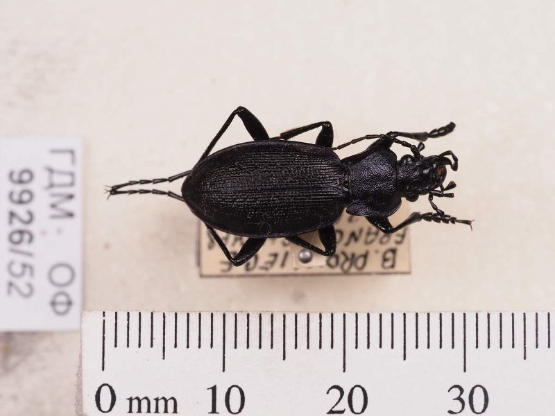 Сухое насекомое. Жук жужелица. Carabus problematicus Herbst, 1786. Классификация: Членистоногие Arthropoda, Насекомые Insecta, Жуки Coleoptera, Жужелицы Carabidae, Carabus, Жук C. coriaceus Linne, 1758