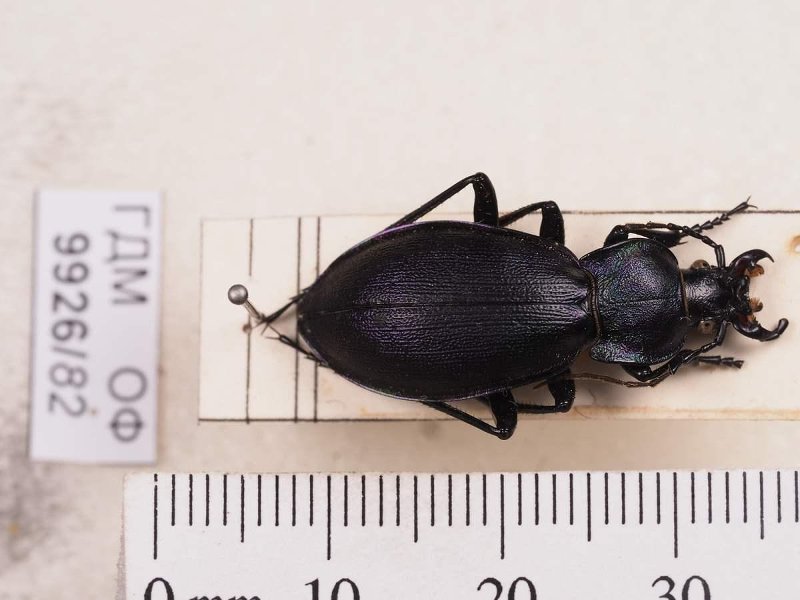 Сухое насекомое. Жук жужелица. Carabus violaceus Linnaeus, 1758. Классификация: Членистоногие Arthropoda, Насекомые Insecta, Жуки Coleoptera, Жужелицы Carabidae, Carabus, Жук C. coriaceus Linne, 1758