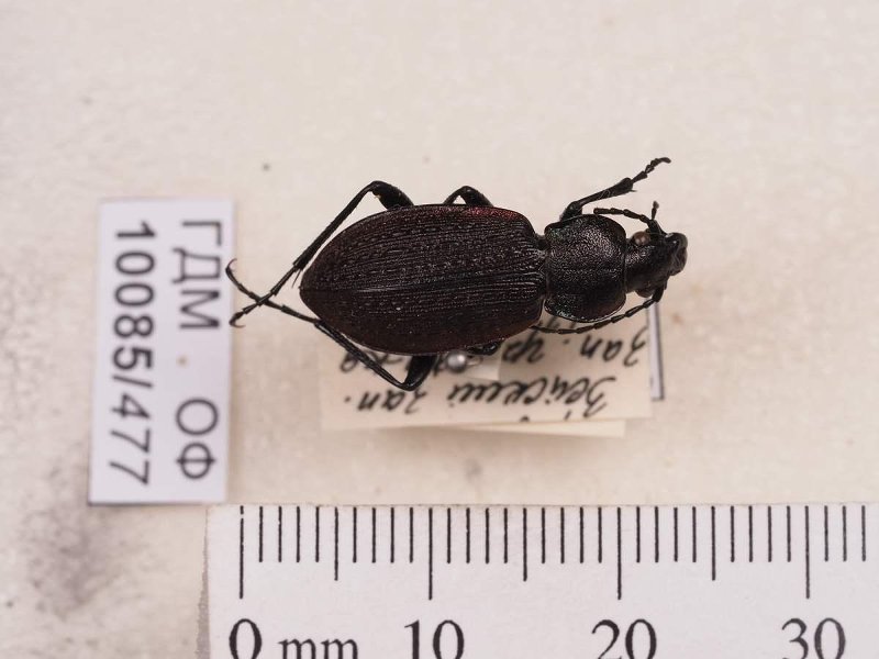 Сухое насекомое. Жук жужелица. Carabus arcensis Herbst, 1784. Классификация: Членистоногие Arthropoda, Насекомые Insecta, Жуки Coleoptera, Жужелицы Carabidae