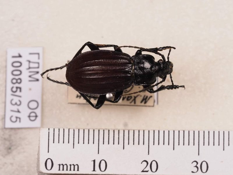 Сухое насекомое. Жук жужелица. Carabus canaliculatus Adams, 1812. Классификация: Членистоногие Arthropoda, Насекомые Insecta, Жуки Coleoptera, Жужелицы Carabidae
