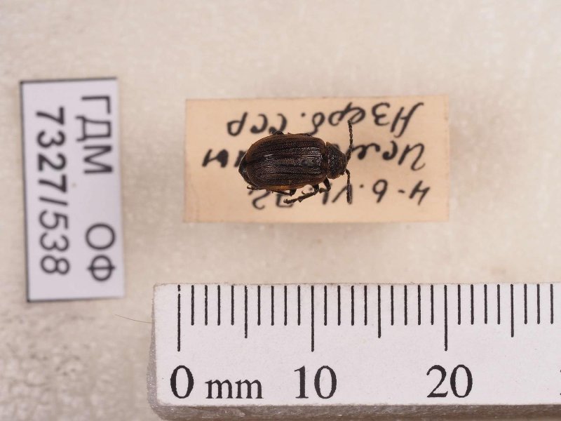 Сухой препарат. Жук листоед. Galeruca. Классификация: Членистоногие Arthropoda, Насекомые Insecta, Жуки Coleoptera, Листоеды Chrysomelidae
