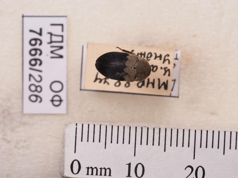 Сухое насекомое. Жук кожеед. Dermestes dimidiatus Steven, 1808. Классификация: Членистоногие Arthropoda, Насекомые Insecta, Жуки Coleoptera, Кожееды Dermestidae