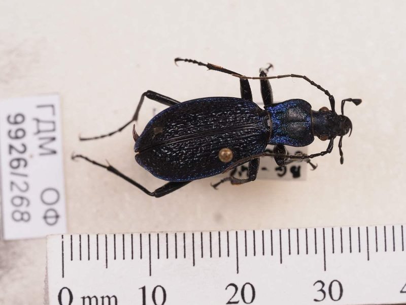 Сухое насекомое. Жук жужелица. Carabus intricatus Linnaeus, 1761. Классификация: Членистоногие Arthropoda, Насекомые Insecta, Жуки Coleoptera, Жужелицы Carabidae, Carabus, Жук C. coriaceus Linne, 1758
