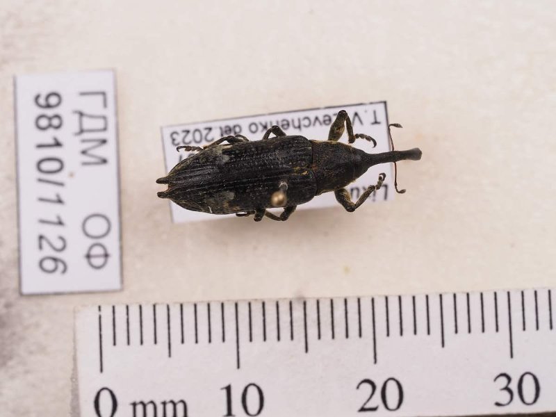 Сухое насекомое. Жук долгоносик. Lixus furcatus Olivier, 1807. Классификация: Членистоногие Arthropoda, Насекомые Insecta, Жуки Coleoptera, Долгоносики Curculionidae