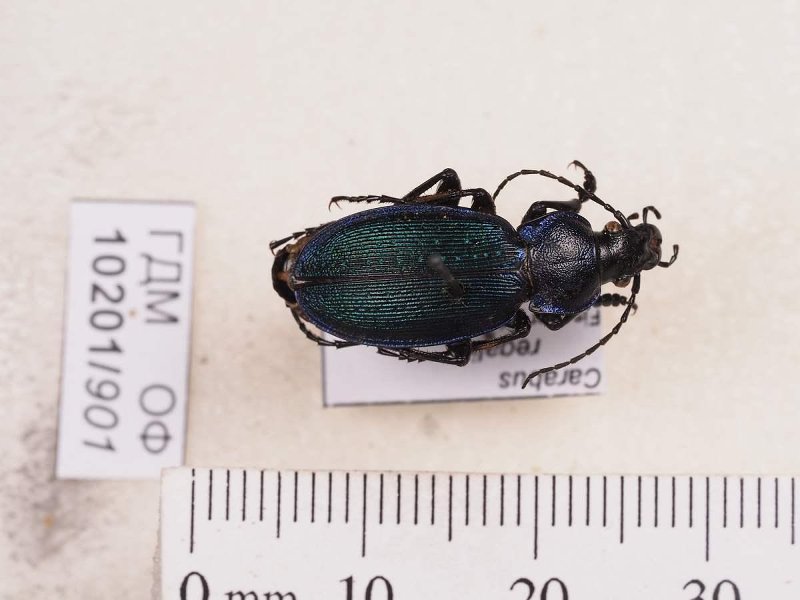 Сухое насекомое. Жук жужелица. Carabus regalis Fischer von Waldheim, 1822. Классификация: Членистоногие Arthropoda, Насекомые Insecta, Жуки Coleoptera, Жужелицы Carabidae