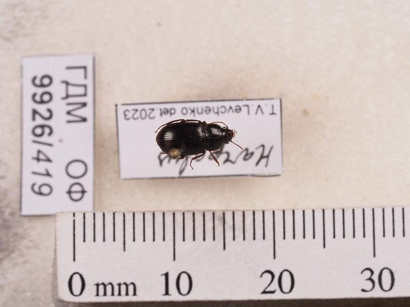 Сухое насекомое. Жук птеростих. Harpalus. Классификация: Членистоногие Arthropoda, Насекомые Insecta, Жуки Coleoptera, Жужелицы Carabidae, Carabus, Жук C. coriaceus Linne, 1758