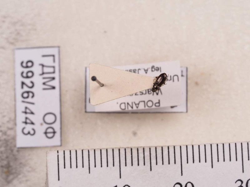 Сухое насекомое. Жук бегунчик. Bembidion. Классификация: Членистоногие Arthropoda, Насекомые Insecta, Жуки Coleoptera, Жужелицы Carabidae, Carabus, Жук C. coriaceus Linne, 1758