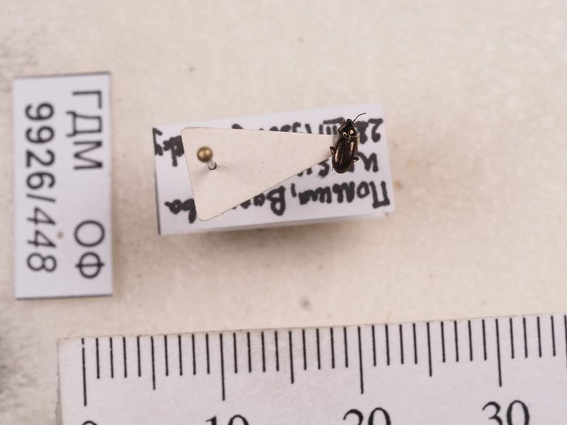Сухое насекомое. Жук бегунчик. Bembidion. Классификация: Членистоногие Arthropoda, Насекомые Insecta, Жуки Coleoptera, Жужелицы Carabidae, Carabus, Жук C. coriaceus Linne, 1758