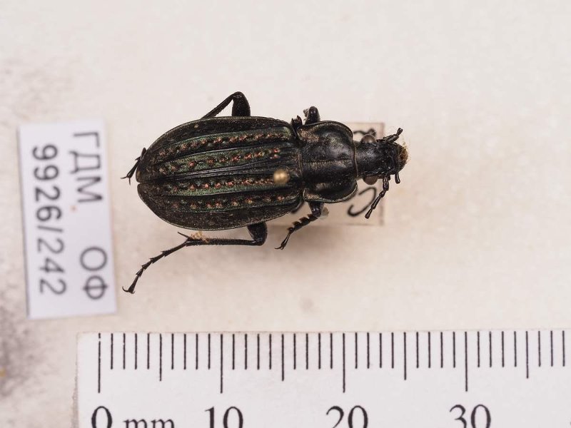 Сухое насекомое. Жук жужелица. Carabus clathratus Linnaeus, 1761. Классификация: Членистоногие Arthropoda, Насекомые Insecta, Жуки Coleoptera, Жужелицы Carabidae, Carabus, Жук C. coriaceus Linne, 1758