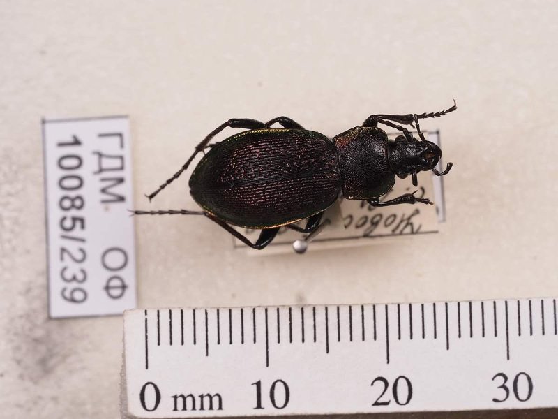 Сухое насекомое. Жук жужелица. Carabus henningi Fischer von Waldheim, 1817. Классификация: Членистоногие Arthropoda, Насекомые Insecta, Жуки Coleoptera, Жужелицы Carabidae