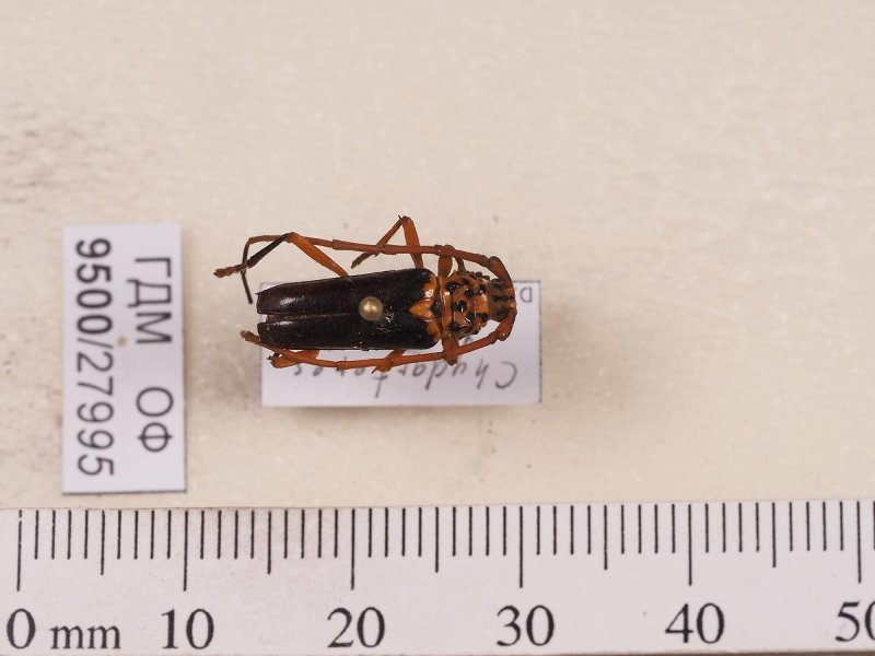 Сухое насекомое. Жук усач. Chydarteres dimidiatus (Fabricius, 1787). Классификация: Членистоногие Arthropoda, Насекомые Insecta, Жуки Coleoptera, Усачи Cerambycidae