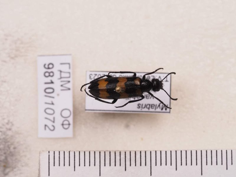 Сухое насекомое. Жук нарывник. Mylabris variabilis (Pallas, 1781). Классификация: Членистоногие Arthropoda, Насекомые Insecta, Жуки Coleoptera, Нарывники Meloidae