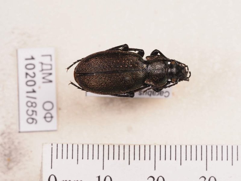 Сухое насекомое. Жук жужелица. Carabus regalis Fischer von Waldheim, 1822. Классификация: Членистоногие Arthropoda, Насекомые Insecta, Жуки Coleoptera, Жужелицы Carabidae
