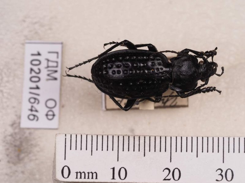 Сухое насекомое. Жук жужелица. Carabus cribratus Quensel, 1806. Классификация: Членистоногие Arthropoda, Насекомые Insecta, Жуки Coleoptera, Жужелицы Carabidae