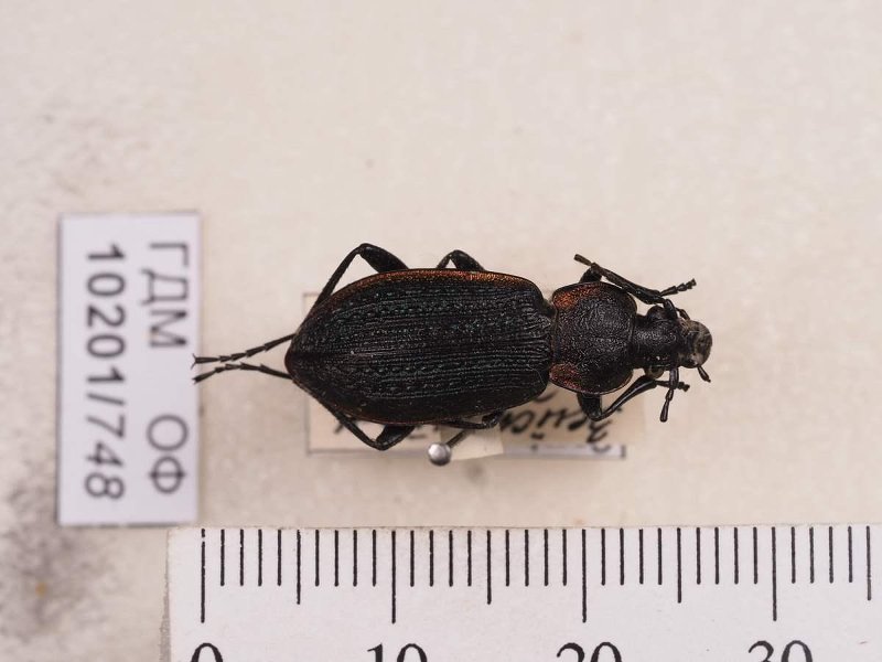 Сухое насекомое. Жук жужелица. Carabus arcensis Herbst, 1784. Классификация: Членистоногие Arthropoda, Насекомые Insecta, Жуки Coleoptera, Жужелицы Carabidae
