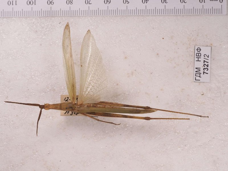 Сухое насекомое. Акрида пустынная. Acrida oxycephala (Pallas, 1771). Классификация: Членистоногие Arthropoda, Насекомые Insecta, Прямокрылые Orthoptera, Саранчовые Acrididae