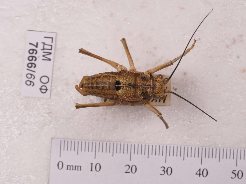 Сухое насекомое. Дамалаканта. Damalacantha vacca (Fischer von Waldheim, 1846). Классификация: Членистоногие Arthropoda, Насекомые Insecta, Прямокрылые Orthoptera, Шароглавы Bradyporidae