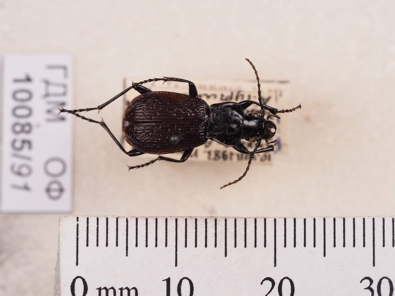 Сухое насекомое. Жук птеростих. Pterostichus interruptus (Dejean, 1828). Классификация: Членистоногие Arthropoda, Насекомые Insecta, Жуки Coleoptera, Жужелицы Carabidae