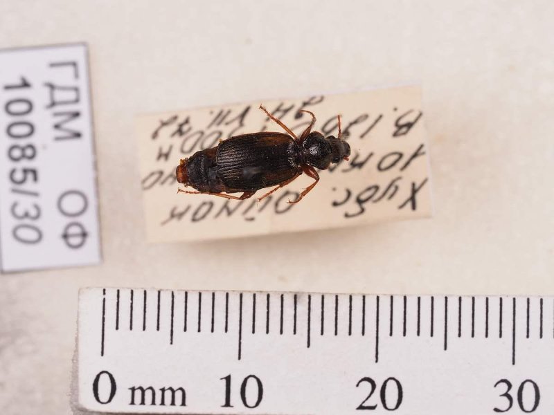 Сухое насекомое. Жук лебия Anisodactylus binotatus Fabricius, 1787. Классификация: Членистоногие Arthropoda, Насекомые Insecta, Жуки Coleoptera, Жужелицы Carabidae