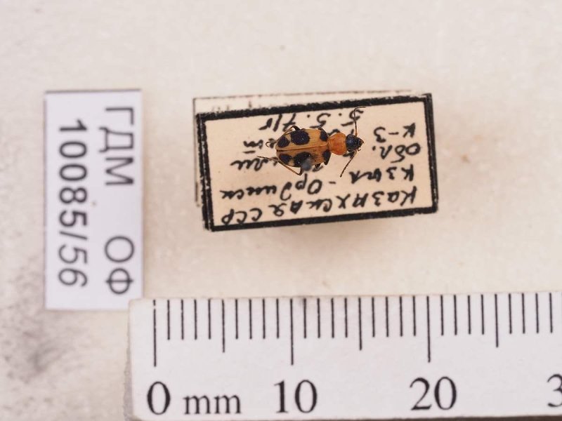 Сухое насекомое. Жук слизнеед. Callistus lunatus (Fabricius, 1775). Классификация: Членистоногие Arthropoda, Насекомые Insecta, Жуки Coleoptera, Жужелицы Carabidae