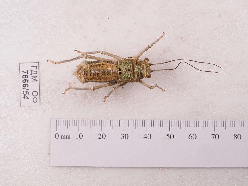 Сухое насекомое. Дамалаканта. Damalacantha vacca (Fischer von Waldheim, 1846). Классификация: Членистоногие Arthropoda, Насекомые Insecta, Прямокрылые Orthoptera, Шароглавы Bradyporidae