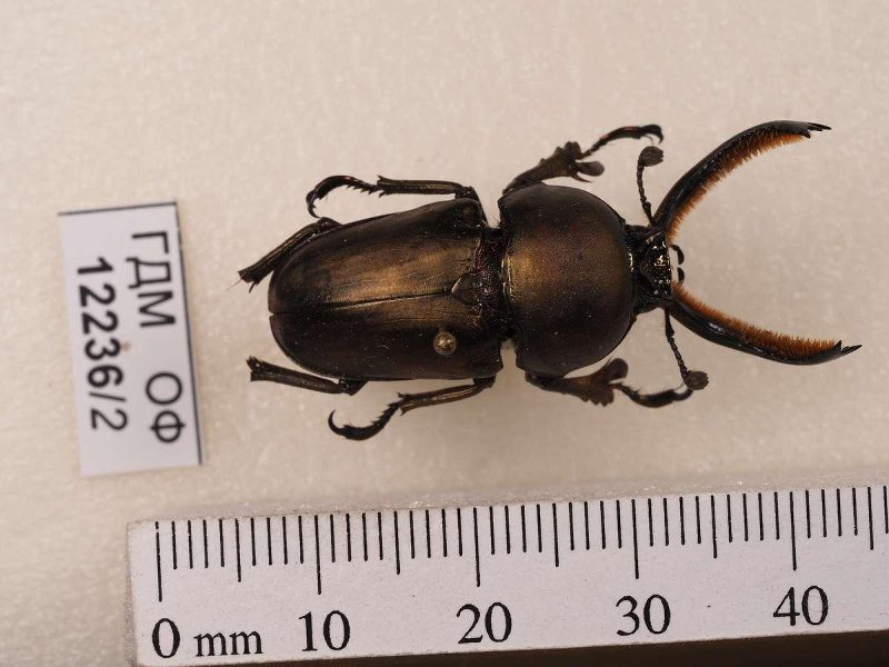 Сухое насекомое. Рогач. Lamprima adolphinae Gestro, 1876. Классификация: Членистоногие Arthropoda, Насекомые Insecta, Жуки Coleoptera, Рогачи Lucanidae