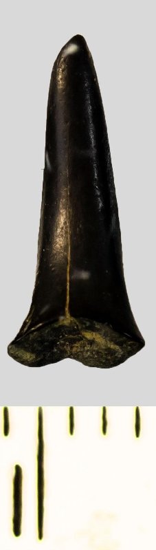 Зуб (фрагмент). Акула. Striatolamia sp. Классификация: Хордовые Chordata, Позвоночные Vertebrata, Хрящевые рыбы Chondrichthyes, Пластиножаберные Elasmobranchii