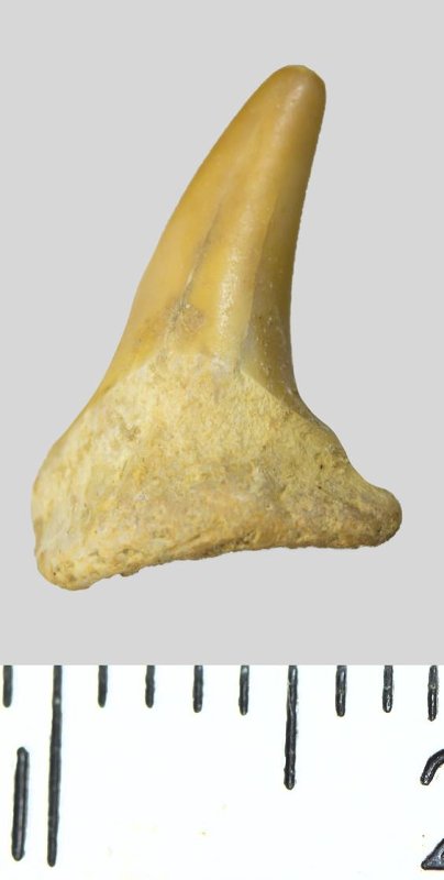Зуб (фрагмент). Акула. Lamniformes gen. et sp. indet. Классификация: Хордовые Chordata, Позвоночные Vertebrata, Хрящевые рыбы Chondrichthyes, Пластиножаберные Elasmobranchii