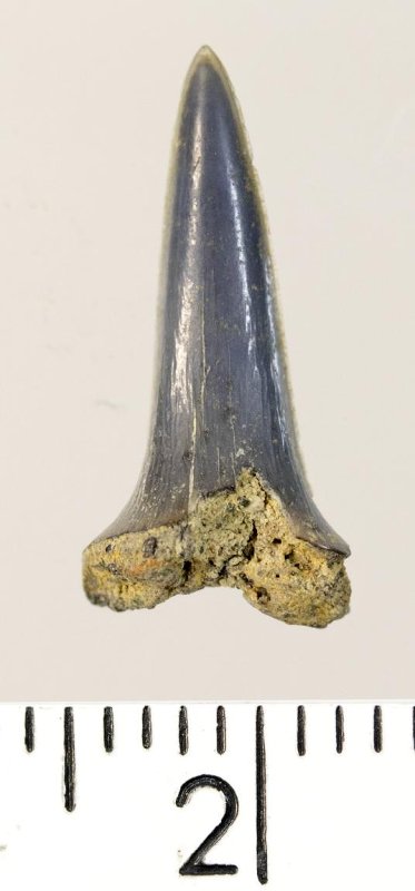 Зуб (фрагмент). Акула. Hypotodus sp. Классификация: Хордовые Chordata, Позвоночные Vertebrata, Хрящевые рыбы Chondrichthyes, Пластиножаберные Elasmobranchii