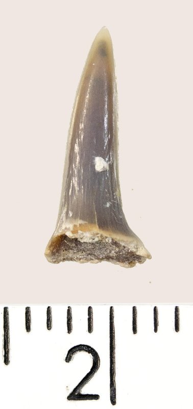 Зуб (фрагмент). Акула. Hypotodus sp. Классификация: Хордовые Chordata, Позвоночные Vertebrata, Хрящевые рыбы Chondrichthyes, Пластиножаберные Elasmobranchii