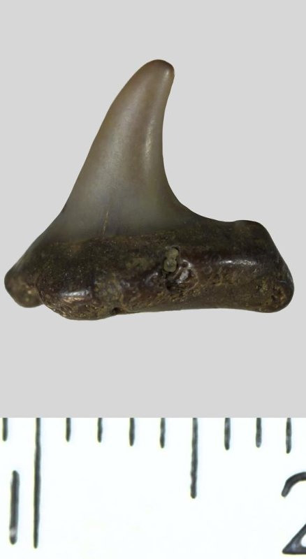 Зуб. Акула. Eostriatolamia venusta Leriche, 1906. Классификация: Хордовые Chordata, Позвоночные Vertebrata, Хрящевые рыбы Chondrichthyes, Пластиножаберные Elasmobranchii