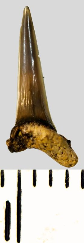 Зуб. Акула. Eostriatolamia subulata (Agassiz, 1843). Классификация: Хордовые Chordata, Позвоночные Vertebrata, Хрящевые рыбы Chondrichthyes, Пластиножаберные Elasmobranchii, Акулы Selachii, Ламнообразные Lamniformes, Песчаные акулы Odontaspididae