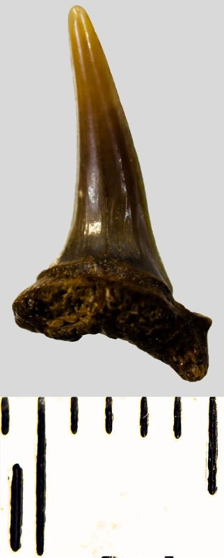 Зуб. Акула. Eostriatolamia subulata (Agassiz, 1843). Классификация: Хордовые Chordata, Позвоночные Vertebrata, Хрящевые рыбы Chondrichthyes, Пластиножаберные Elasmobranchii, Акулы Selachii, Ламнообразные Lamniformes, Песчаные акулы Odontaspididae