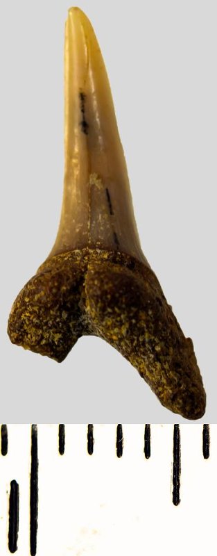 Зуб. Акула. Eostriatolamia subulata (Agassiz, 1843). Классификация: Хордовые Chordata, Позвоночные Vertebrata, Хрящевые рыбы Chondrichthyes, Пластиножаберные Elasmobranchii, Акулы Selachii, Ламнообразные Lamniformes, Песчаные акулы Odontaspididae