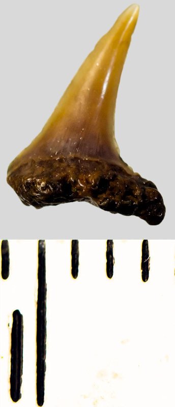 Зуб. Акула. Eostriatolamia subulata (Agassiz, 1843). Классификация: Хордовые Chordata, Позвоночные Vertebrata, Хрящевые рыбы Chondrichthyes, Пластиножаберные Elasmobranchii, Акулы Selachii, Ламнообразные Lamniformes, Песчаные акулы Odontaspididae