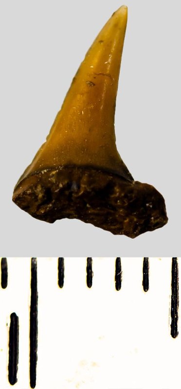 Зуб. Акула. Eostriatolamia subulata (Agassiz, 1843). Классификация: Хордовые Chordata, Позвоночные Vertebrata, Хрящевые рыбы Chondrichthyes, Пластиножаберные Elasmobranchii, Акулы Selachii, Ламнообразные Lamniformes, Песчаные акулы Odontaspididae