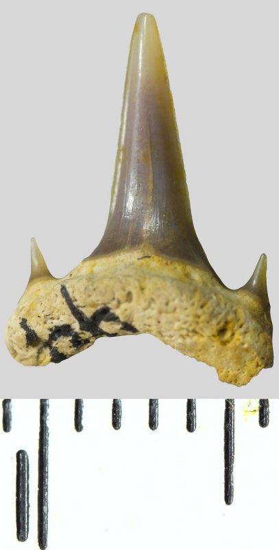Зуб. Акула. Eostriatolamia sp. Классификация: Хордовые Chordata, Позвоночные Vertebrata, Хрящевые рыбы Chondrichthyes, Пластиножаберные Elasmobranchii