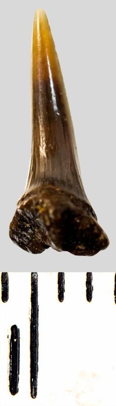 Зуб. Акула. Eostriatolamia subulata (Agassiz, 1843). Классификация: Хордовые Chordata, Позвоночные Vertebrata, Хрящевые рыбы Chondrichthyes, Пластиножаберные Elasmobranchii, Акулы Selachii, Ламнообразные Lamniformes, Песчаные акулы Odontaspididae