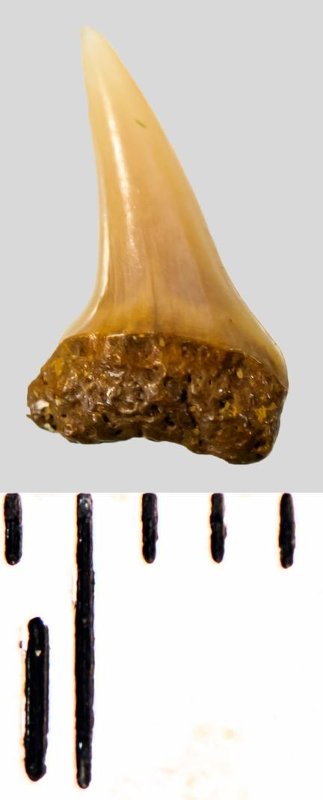 Зуб. Акула. Eostriatolamia subulata (Agassiz, 1843). Классификация: Хордовые Chordata, Позвоночные Vertebrata, Хрящевые рыбы Chondrichthyes, Пластиножаберные Elasmobranchii, Акулы Selachii, Ламнообразные Lamniformes, Песчаные акулы Odontaspididae