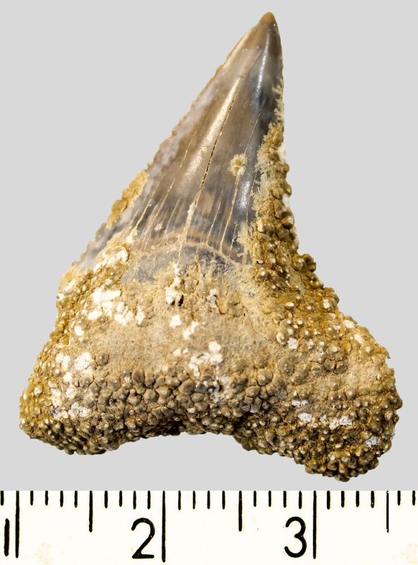 Зуб. Акула. Otodus subserratus (Agassiz, 1843). Классификация: Хордовые Chordata, Позвоночные Vertebrata, Хрящевые рыбы Chondrichthyes, Пластиножаберные Elasmobranchii