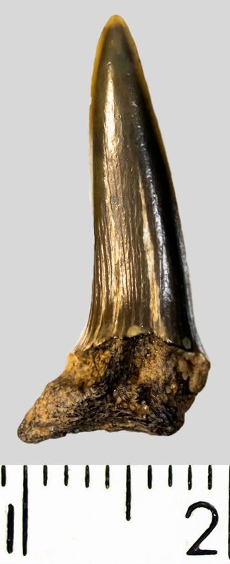 Зуб (фрагмент). Акула. Striatolamia macrota (Agassiz,1843)