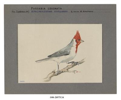 Краснохохлая кардиналовая овсянка. Paroaria coronata. Рисунок